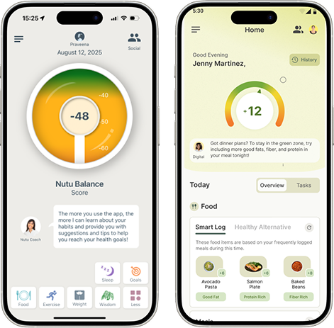 Nutu is a digital health app that helps people build healthier habits and manage risks like prediabetes. It combines: